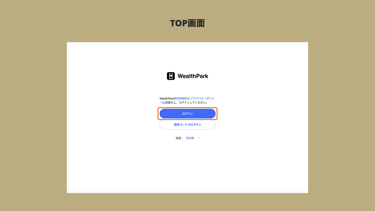 パソコン版WealthParkを開き、「ログイン」をクリックします。