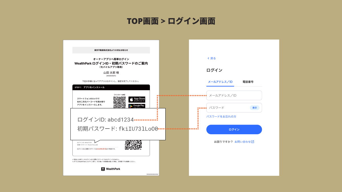 本機能により、オーナー様は、お手元のご案内状PDFに記載されたログイン情報をPC画面にご入力いただくだけで、すぐにサービスのご利用を開始できます。